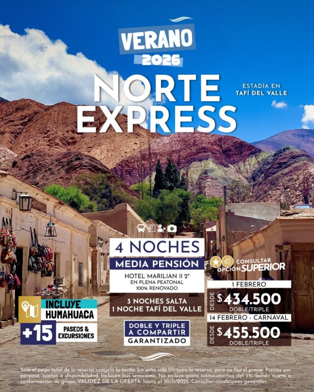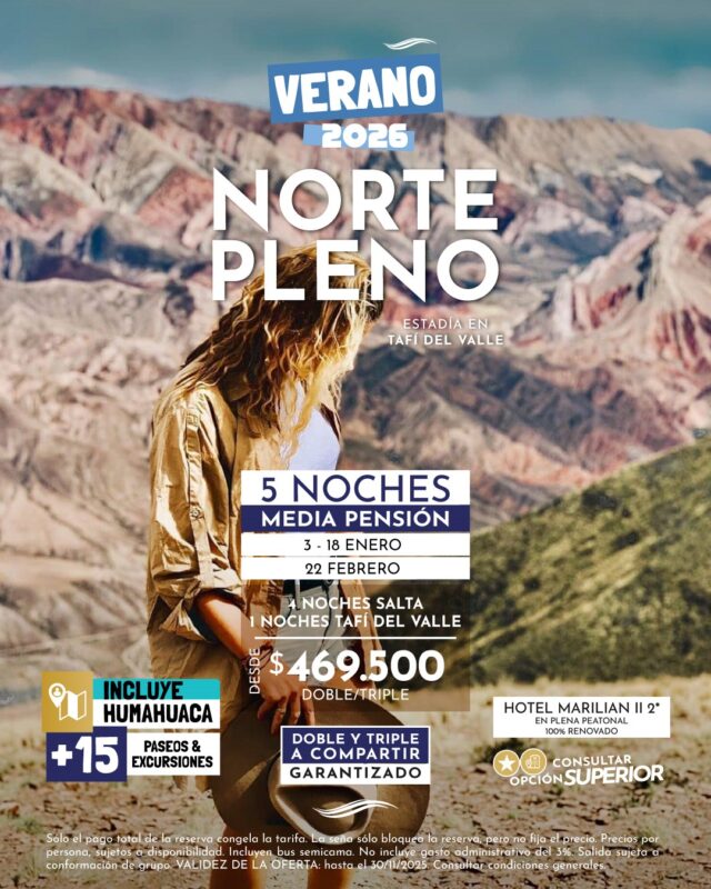 - Seña: realizar seña del 40%, a las 72 hs. de la fecha del alta de la reserva. La seña reserva lugares, no congela tarifa.