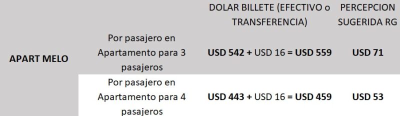 - La percepción (RG 4815) sugerida por pasajero es a modo informativo, deberá ser cobrada por la agencia de viajes minorista.