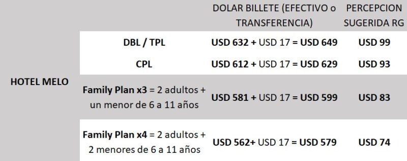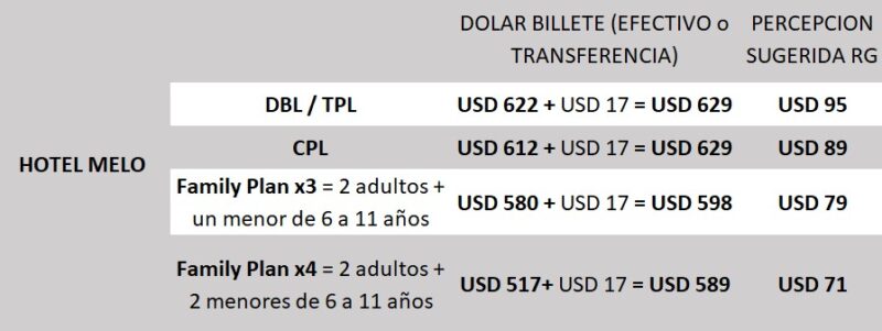 DBL/TPL usd 559 por personaOPCIÓN 2