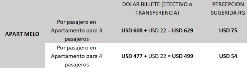 - Tarifas expresadas en dólares, sujetas a variación sin previo aviso.