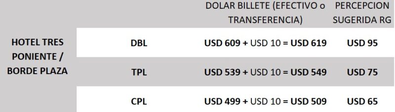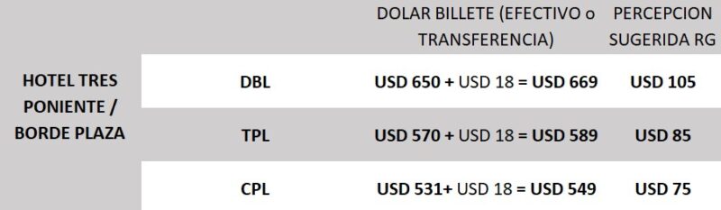 • La percepción (RG 4815) sugerida por pasajero es a modo informativo, deberá ser cobrada por la agencia de viajes minorista.